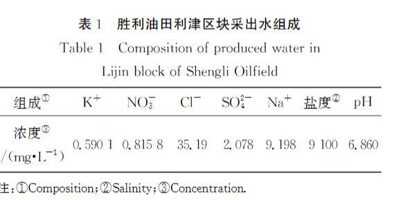 實驗試劑:葡萄糖、檸檬酸鈉、酵母粉、KH2PO4、(NH4)2SO4、MgSO4·7H2O、乙酸乙酯為分析純,購自國藥集團化學試劑有限公司;正己烷為優(yōu)級純,購自Merck公司;二氯甲烷為優(yōu)級純,購自B&J公司;正構烷烴混合標準:C8—C40包含異構烷烴姥鮫烷和植烷,購自Accustandard公司;層析硅膠(100~200目)及硅膠層析板購自青島海洋化工廠;原油采集自中國石化勝利油田有限公司利津區(qū)塊;降解實驗用水根據(jù)勝利油田利津區(qū)塊采出水組成配置(見表1),采出水中pH、鹽度用多參數(shù)儀(Manta3.0,Eureka,美國)測定,K+、NO-3、Cl-、SO2-4、Na+等離子依據(jù)SY/T5523—2016《油田水分析方法》中給出的檢測方法檢測。